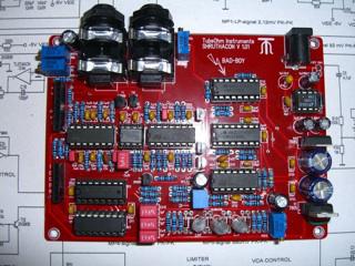 The filterboard is the analog path. It contains the VCA and the filter circuit. Digital control voltages of the motherboard are converted to analog control voltages. The now analog control voltages control the individual function modules.